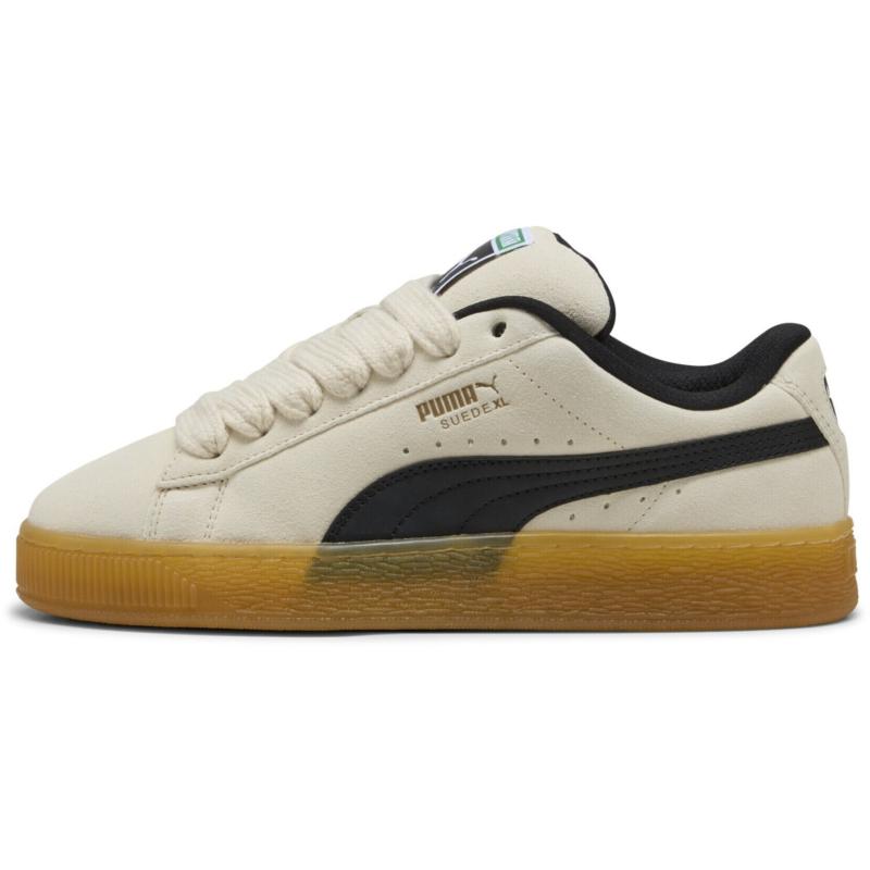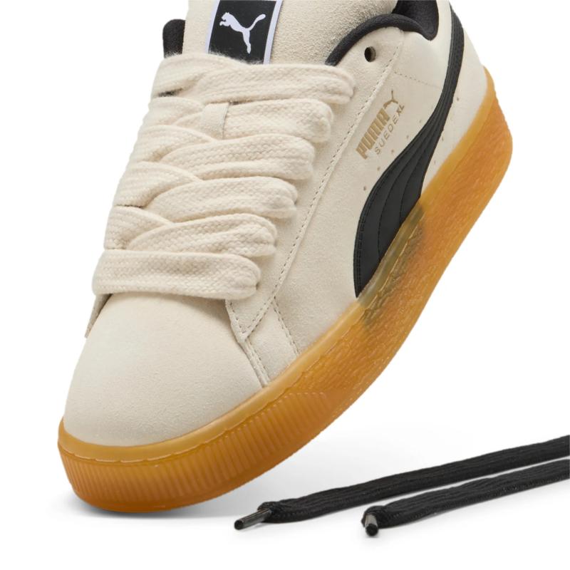 Esta nueva versión del clásico Suede se inspira en la tradición de PUMA en el breakdance y su influencia en la moda urbana moderna. El Suede XL conserva el ADN icónico del Suede, pero le da un toque diferente con un cuello y lengüeta acolchados exagerados, además de una suela más gruesa. Esta versión presenta una base de cuero con una franja característica de cuero sintético.